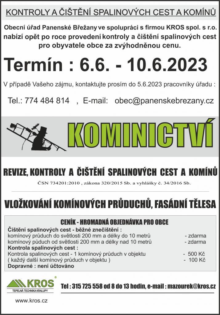 Kontrola a čištění spalinových cest 6. - 10.6.