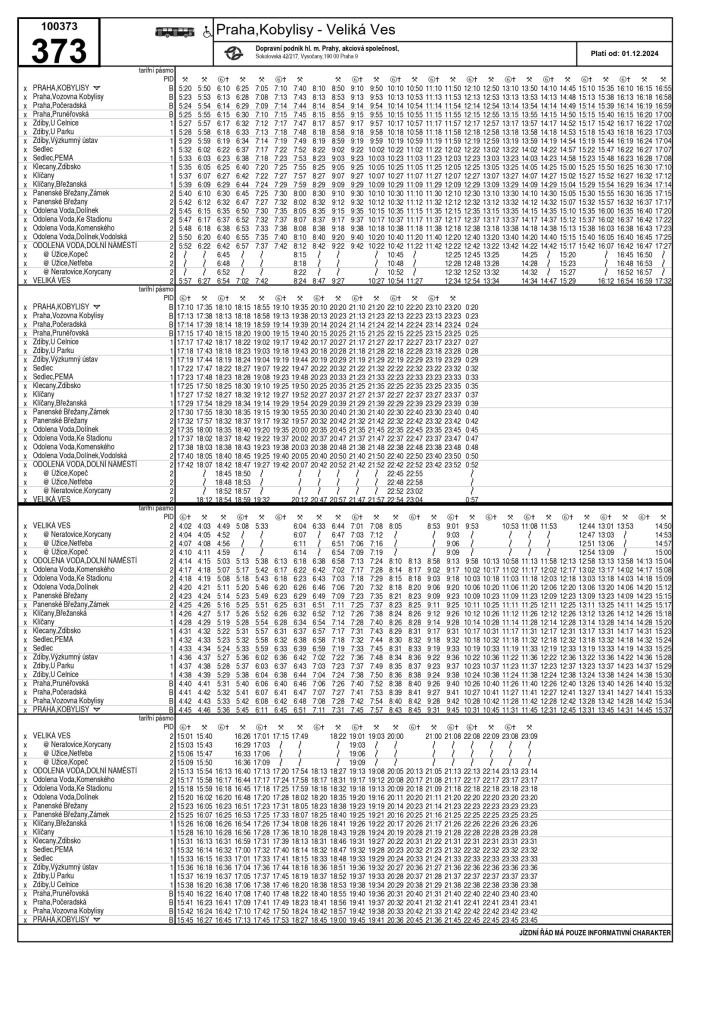 Nový jízdní řád linky 373 od 1.12.