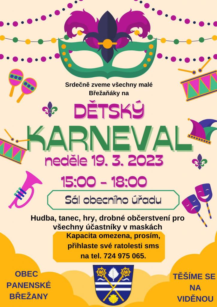 Milí Břežaňáci, zejména Vy mladší, neváhejte, připravte si masky a dorazte na náš dětský karneval, který se odehraje v neděli 19.3. od 15 hodin na úřadě!